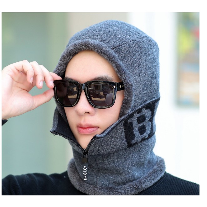 Mũ len nam liên khăn phong cách Hàn, Mũ len trùm đầu nam cao cấp ...